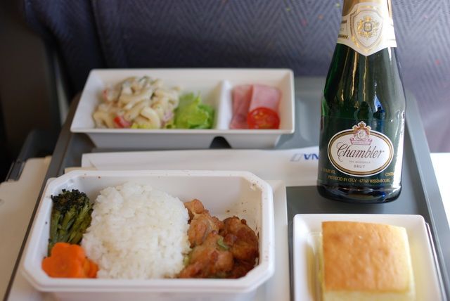 而這次全日空的餐點飲料, 主要就是依藤園綠茶, 點可樂的人還滿少的